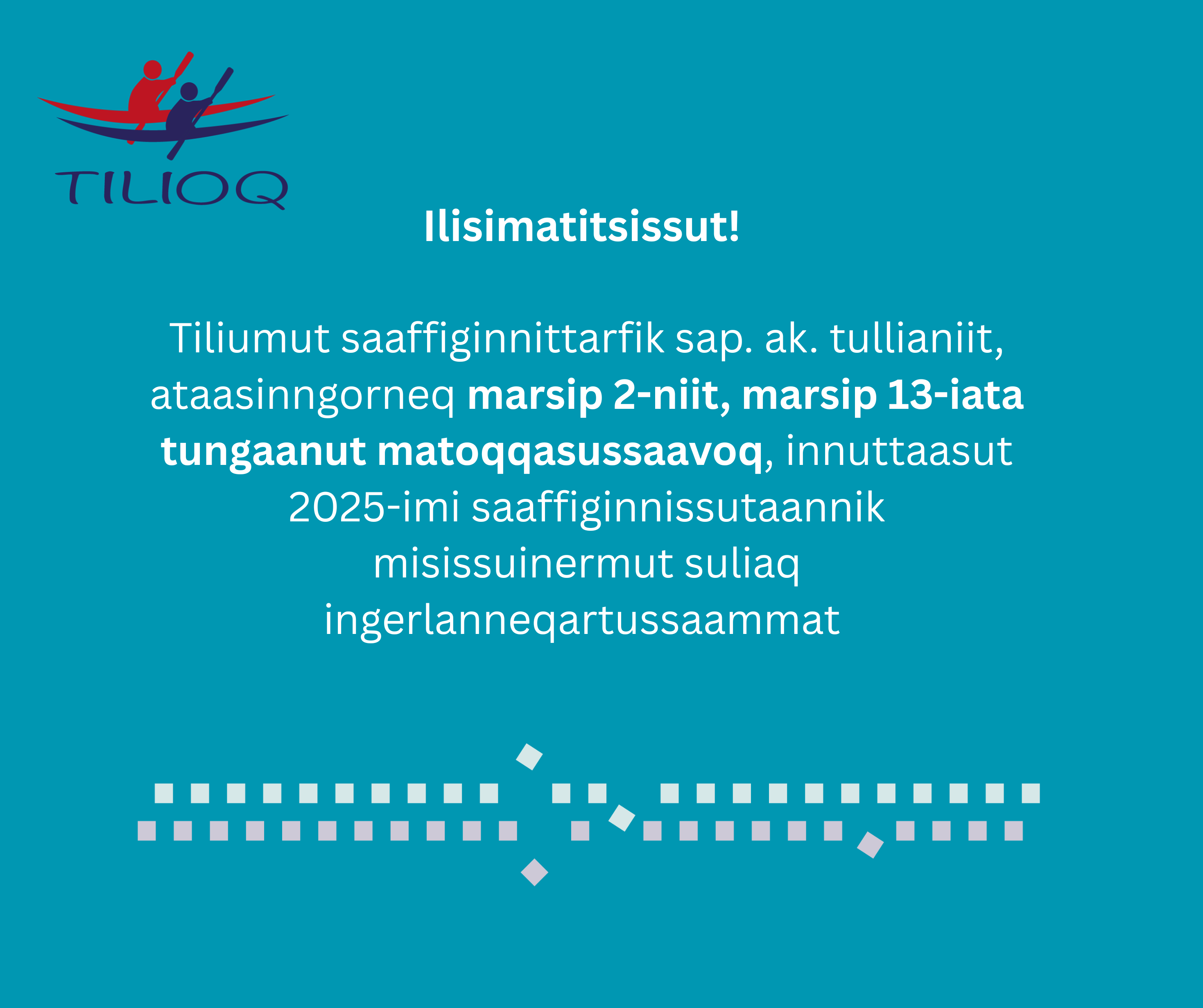 Tiliumut saaffiginnittarfik sap. ak. tullianiit, ataasinngorneq marsip 2-niit, marsip 13-iata tungaanut matoqqasussaavoq, innuttaasut 2025-imi saaffiginnissutaannik misissuinermut suliaq ingerlanneqartussaammat